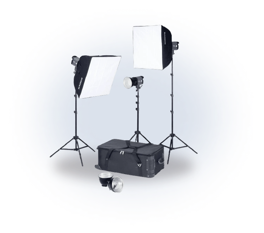 до 1кв мощности 2шт со стойками manfrotto с высотой до 4х метров + свет ARRI 300 Watt